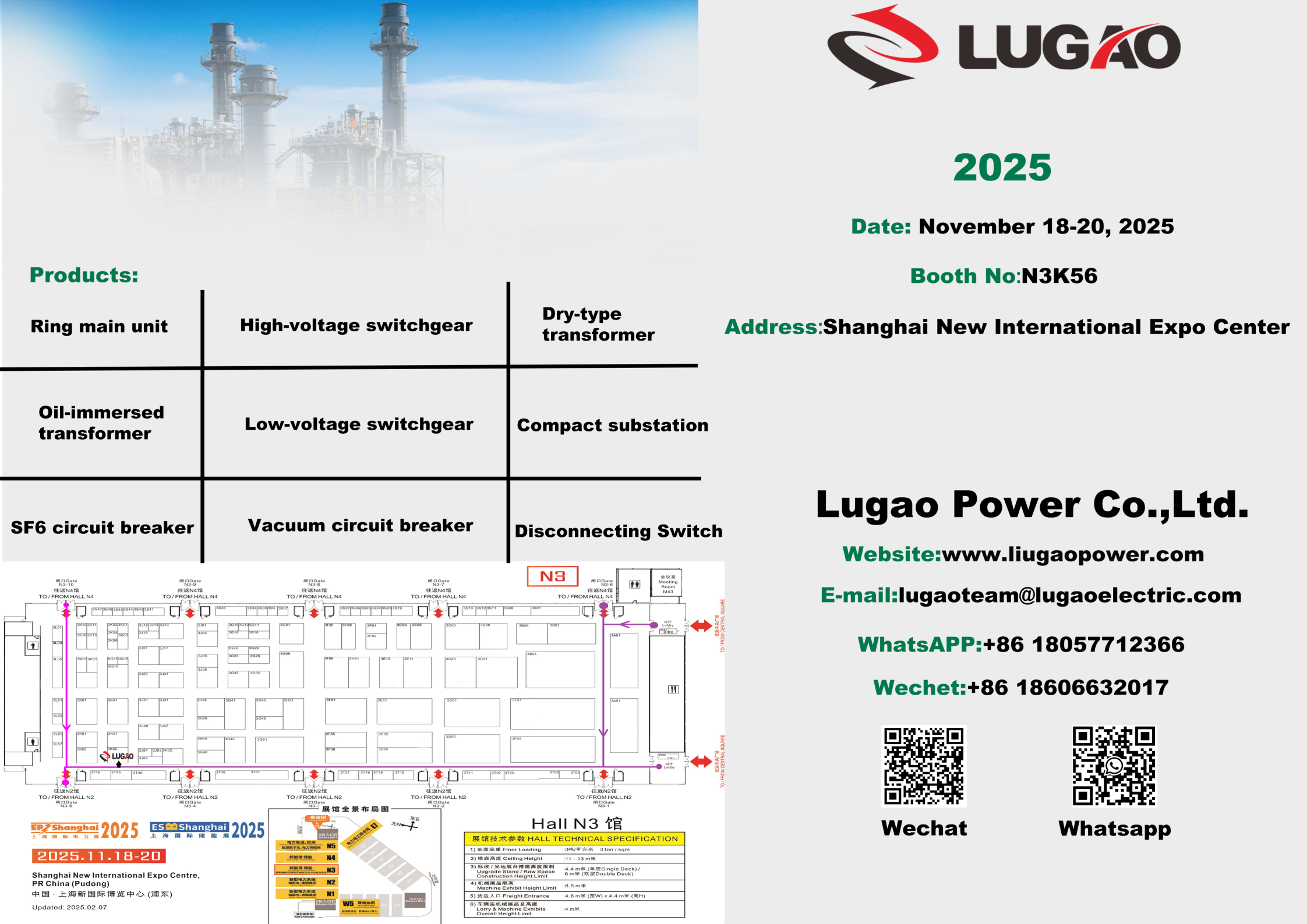 Очекује вас освежавајући јесењи дан, а велики догађај је овде по плану.Лугао Повер Цо., Лтд.искрено вас позива да посетите међународну изложбу електричне енергије и електричне енергије у Шангају 2025. (ЕП изложба) како бисте код нас истражили најсавременије технологије и иновативна решења за паметну енергетску опрему.